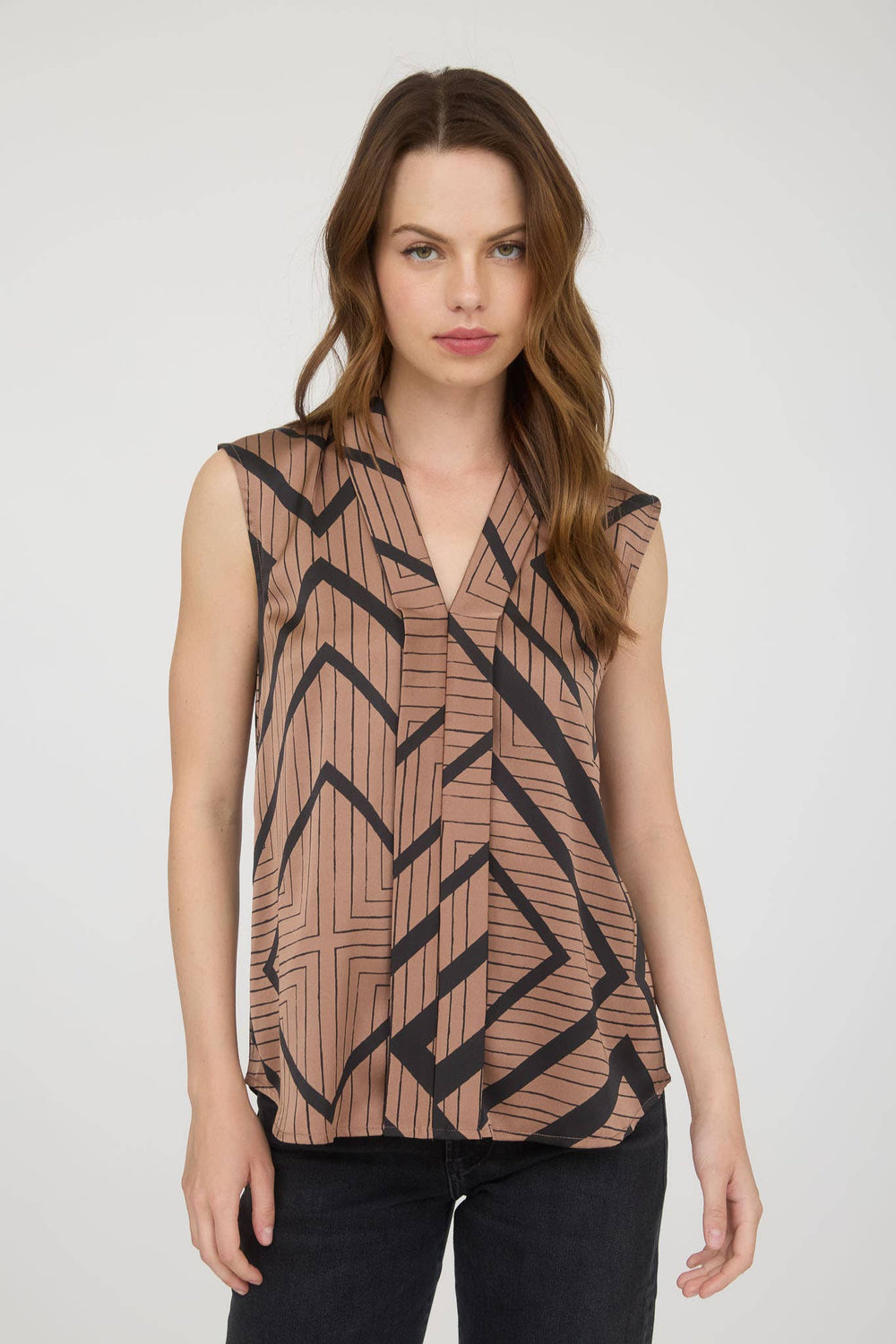 HOODED V NECK RAW EDGE LONG SLEEVE MOCHA