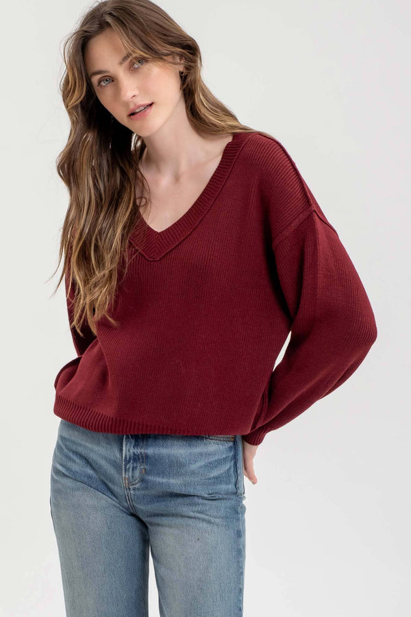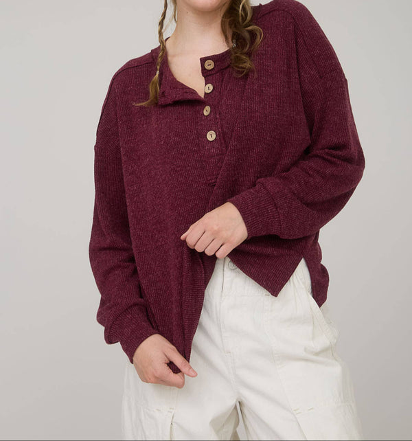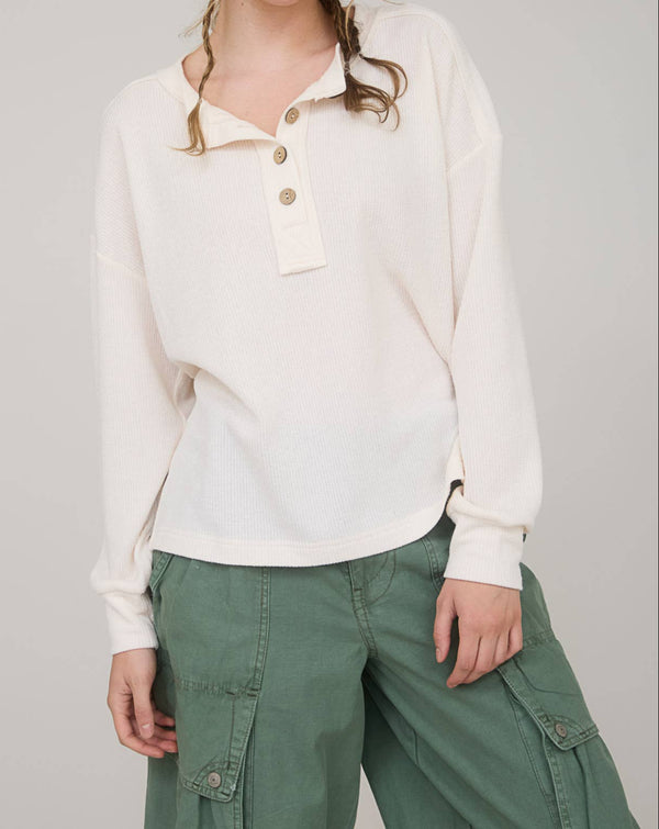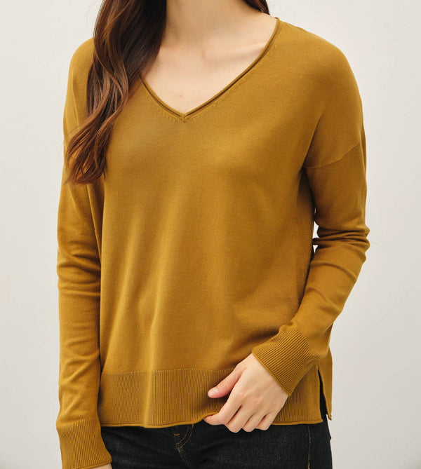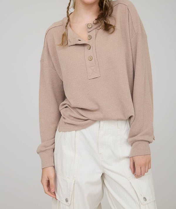 HOODED V NECK RAW EDGE LONG SLEEVE MOCHA