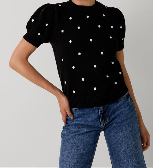 Polka Dot Short Sleeve Top - Black